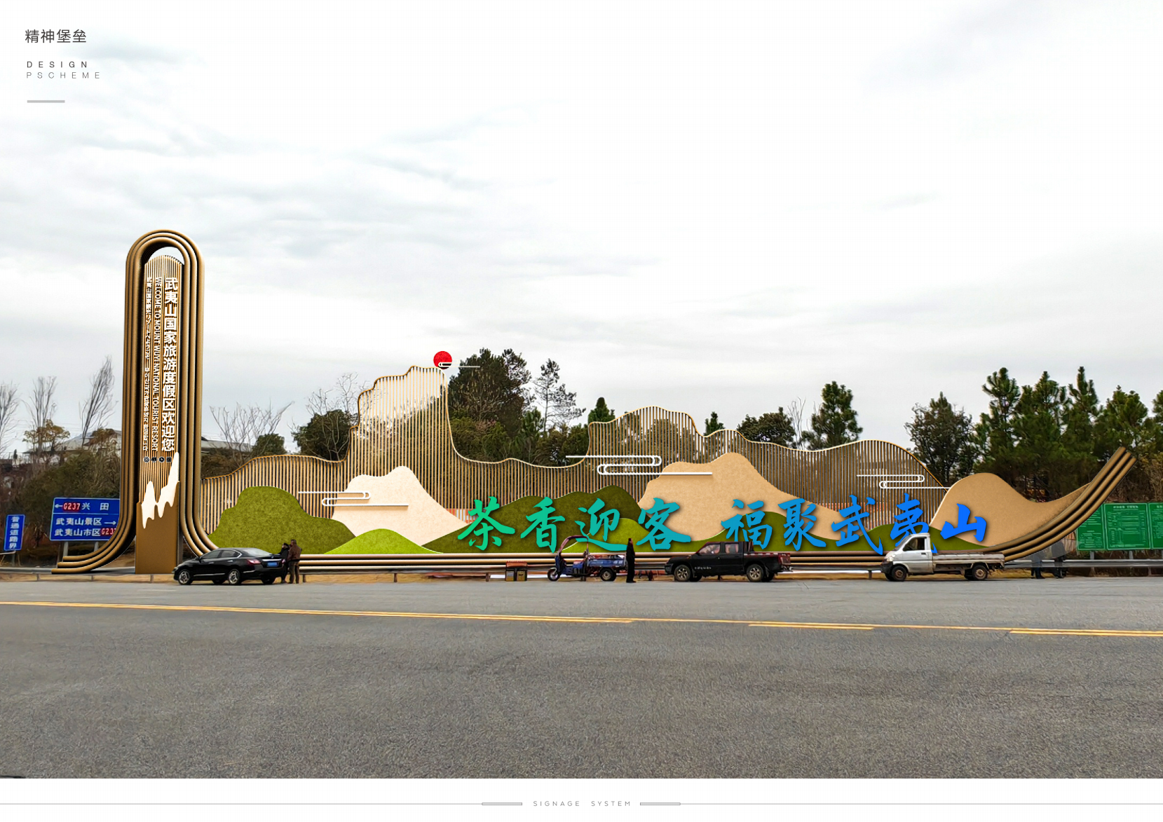 搭配 “茶香迎客 福聚武夷山” 的暖心标语